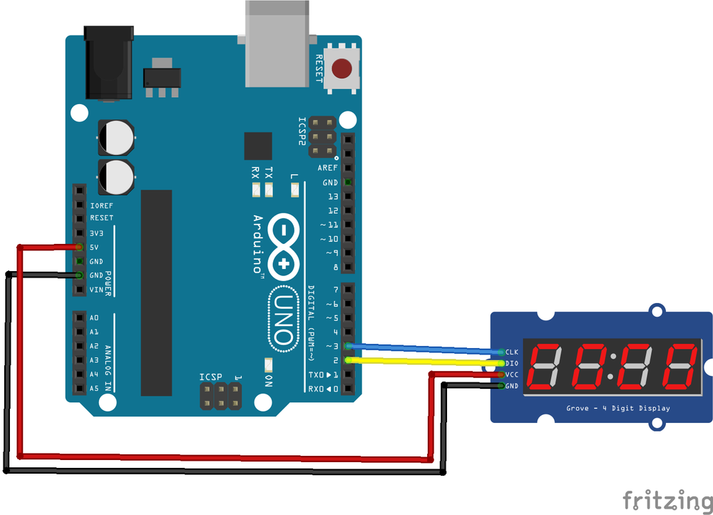 Die Ansteuerung des TM1637 erfolgt über ein serielles Protokoll. Dadurch braucht es am Arduino nur 2 I/O Pins für die Ansteuerung